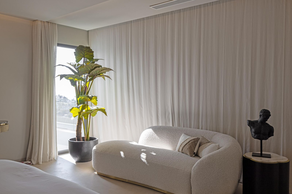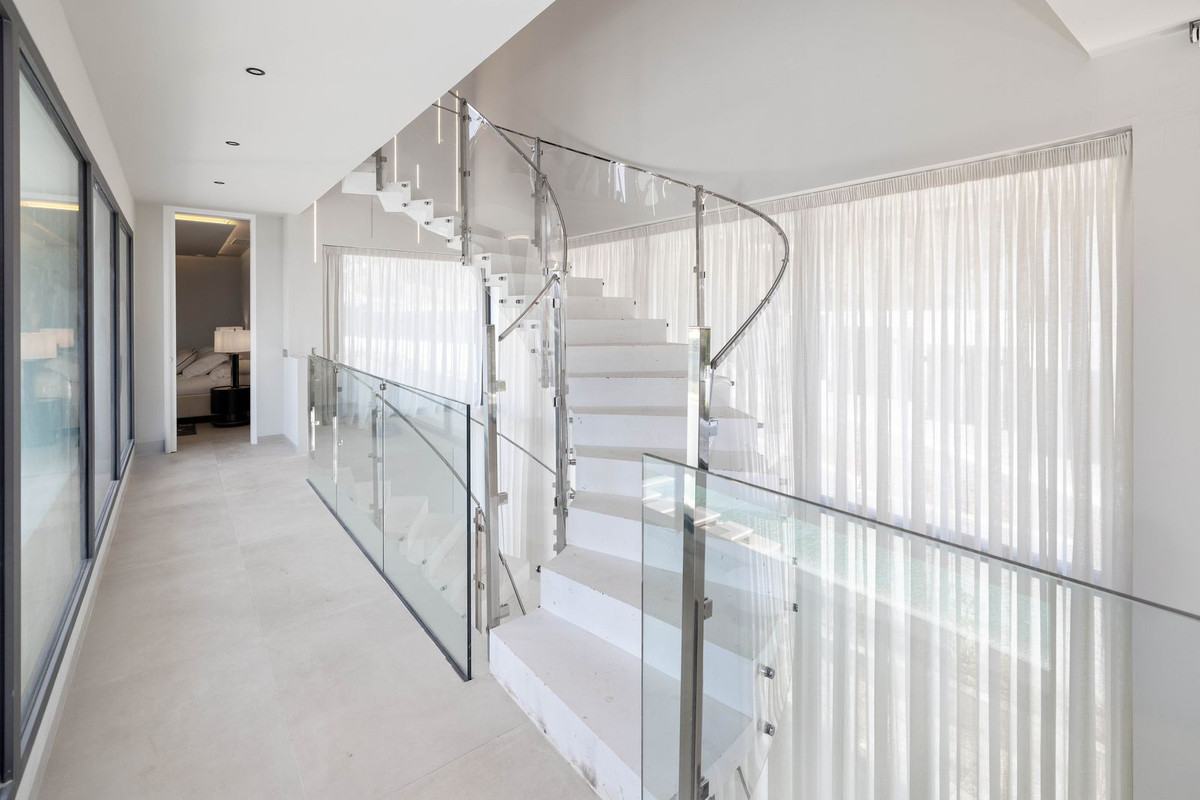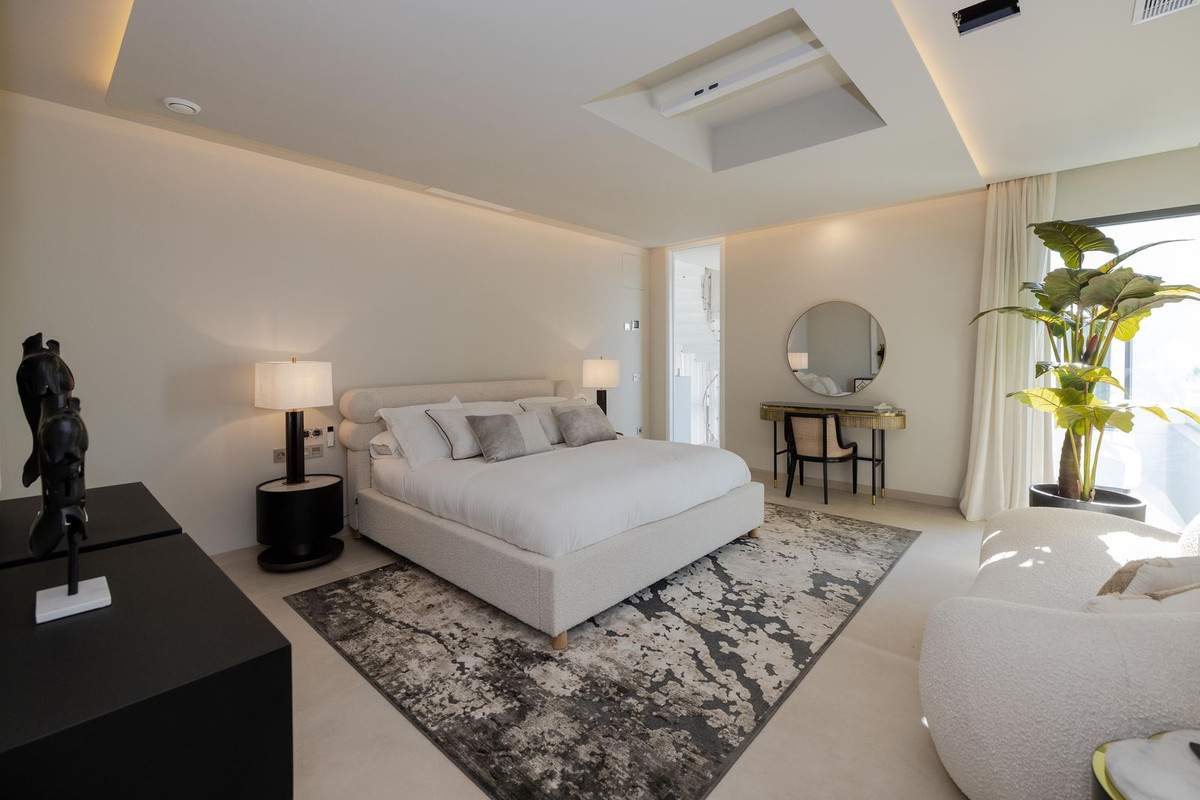 This spectacular detached villa, located in the exclusive area of Benalmádena Costa, is an architectural gem that combines luxury, comfort, and design in a privileged setting. With an impressive interior built area of 954.53 m², an exterior built area of 876.76 m², and landscaped grounds of 1,098.21 m², all set on a plot of 2,057.82 m², the property stands out for its spaciousness and elegance, designed to meet the needs of the most demanding buyers. The house is distributed over four floors, each with unique features that add functionality and exclusivity. In the basement, there is a private cinema room, two bedrooms with en-suite bathrooms, a laundry room, and a machine room. The ground floor features a spacious living room, dining area, and a designer open-plan kitchen, as well as a bedroom with bathroom, a guest toilet, a cloakroom, and a second living room in the guest area. The exterior of this level is a true oasis of peace, with a swimming pool, a Carrara marble-clad spa with matching seating, and an open-air fireplace, terrace areas, a spectacular barbecue, and a beautifully landscaped garden. On the first floor, there are two bedrooms, a bathroom with shower and bathtub, and a suite with main bathroom and walk-in closet, all of them connected to the outdoor terrace. The attic floor with terrace offers a bedroom with bathroom, a cozy breakfast area, and breathtaking views over Málaga Bay and its sunrises. There is also a technical terrace housing solar panels that guarantee the property’s electrical sustainability, in line with the energy efficiency achieved through the joinery, glazing, and various ecological construction solutions — a detail that perfectly combines luxury with sustainability. The property boasts high-end features such as lacquered wood interior carpentry, premium aluminum exterior carpentry with thermal break (K-LINE brand, KLPF model), double-glazed windows (44/2BC_16G_33-2M) with solar control, and large-format porcelain stoneware floors. The outdoor flooring is Italian travertine marble combined with Carrara marble. The solid wood main entrance door is reinforced for added security. The villa also offers four garage spaces, a garden, gym area, and private pool, all southeast-facing to make the most of natural light throughout the day. Benalmádena Costa is one of the most sought-after areas of the Costa del Sol, renowned for its beaches, marina, and wide range of leisure and dining options. This neighborhood provides a peaceful and exclusive environment, ideal for families and sea lovers. Nearby, you will find the prestigious Torrequebrada International School, located less than 10 kilometers away. The Marina Shopping Center is within close distance, offering a variety of shops, restaurants, and services. Transport connections are excellent, with Benalmádena-Arroyo de la Miel commuter train station less than 5 kilometers away, connecting to Málaga and Fuengirola, along with several bus lines serving the area.