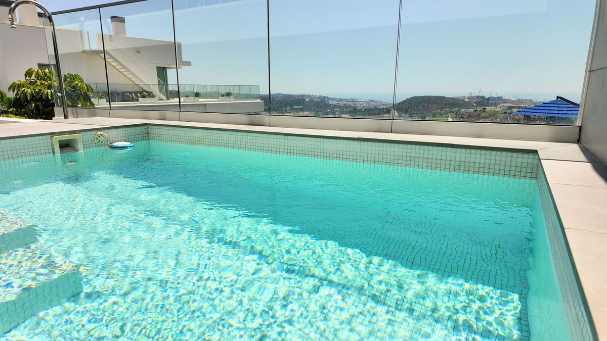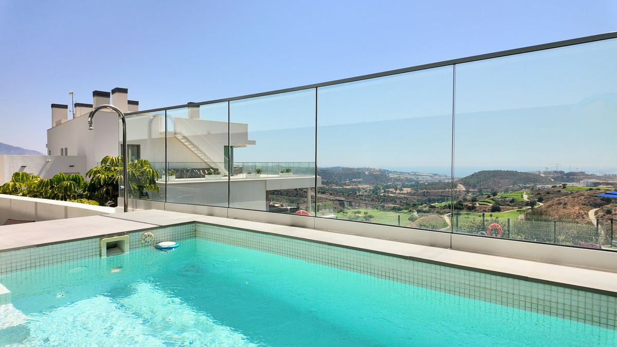 Setting: Frontline Golf, Suburban, Village, Close To Golf, Close To Shops, Close To Town, Close To Schools, Urbanisation Orientation: South Condition: Excellent, New Construction Pool: Communal, Private, Indoor, Heated, Children`s Pool Climate Control: Air Conditioning, Hot A/C, Cold A/C, Central Heating Views: Sea, Mountain, Golf, Country, Panoramic, Pool Features: Covered Terrace, Lift, Fitted Wardrobes, Near Transport, Private Terrace, Satellite TV, WiFi, Gym, Sauna, Storage Room, Utility Room, Ensuite Bathroom, Access for people with reduced mobility, Jacuzzi, Double Glazing, Domotics, Near Church, Fiber Optic Furniture: Fully Furnished Kitchen: Fully Fitted Garden: Communal Security: Gated Complex, Electric Blinds, Entry Phone, Alarm System, 24 Hour Security Parking: Underground, Garage, Covered, More Than One, Private Utilities: Electricity, Drinkable Water, Solar water heating Category: Bargain, Distressed, Golf, Holiday Homes, Investment, Luxury, Contemporary