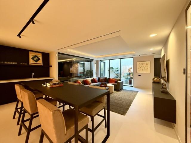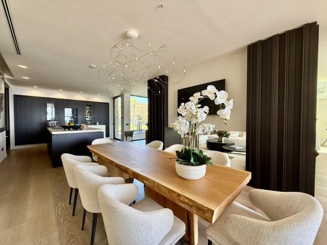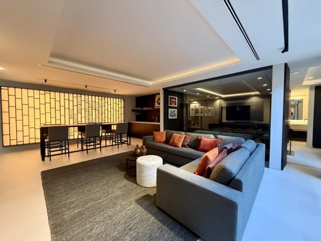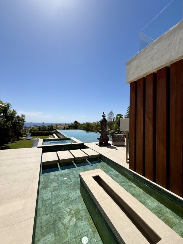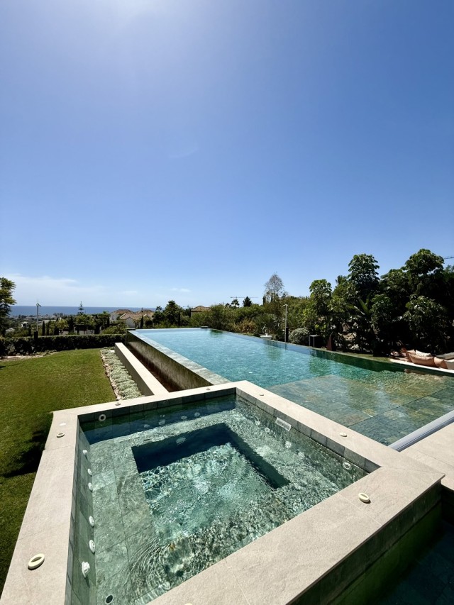 Experience the height of luxury living in this brand-new contemporary villa located in the exclusive Golf Resort, Benahavis. Priced at €5,900,000, this spectacular property combines sleek modern design with breathtaking panoramic views of the Mediterranean Sea, golf course, and its iconic infinity pool. Set on a 1,415 m² plot, the villa offers 496 m² of elegant living space, complemented by 183 m² of terraces designed for seamless indoor-outdoor living. Floor-to-ceiling windows flood the interiors with natural light, showcasing open-plan living areas, a fully equipped designer kitchen, and expansive entertainment spaces. The property features 6 bedrooms and 5 bathrooms, including private guest suites, along with a cinema and games room for ultimate comfort and leisure. Outdoors, the infinity-edge pool serves as the centrepiece, framed by terraces perfect for relaxing or entertaining against a backdrop of sweeping sea and golf views. Located in a secure gated community with 24-hour surveillance, this villa is just minutes from Marbella, Puerto Banús, pristine beaches, and world-class golf courses. It’s the ultimate retreat for those seeking elegance, privacy, and the Costa del Sol lifestyle.