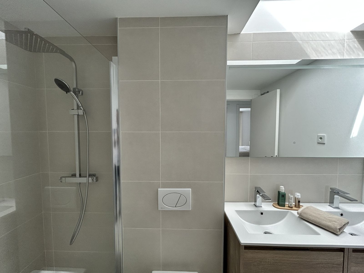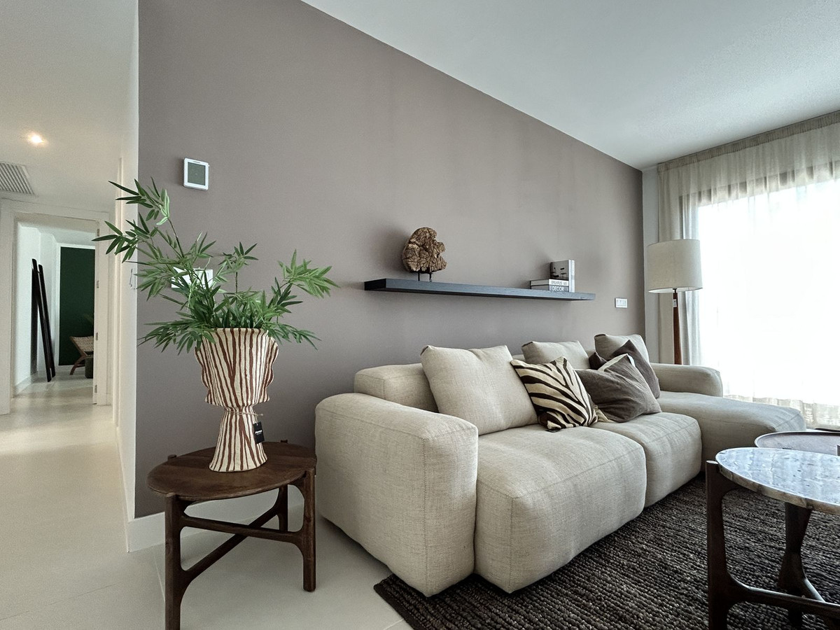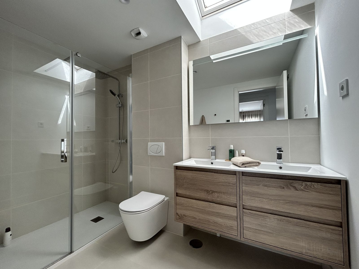 Exclusive newly built penthouse with 3 bedrooms and a spacious south-facing terrace offering spectacular sea and mountain views. The home comes fully furnished with high-end designer pieces created by Ikonia Ilusion&Arte, highlighting the carefully designed lighting and spaciousness of each room. It features a home automation system and smoke detectors, as well as Jung appliances. The modern and functional kitchen features high and low cabinetry, a Silestone countertop, and paneled appliances with an A energy rating (hob, oven, microwave, extractor hood, refrigerator, dishwasher, and washer-dryer). The bathrooms feature wall-hung toilets, extra-flat shower trays with screens, and the master bathroom features a double sink with integrated cabinetry. The open-plan design combines the living room and kitchen in a single space, connected to the terrace by large sliding windows that maximize light and create a seamless transition between indoors and outdoors. Its features include air conditioning (heating/cooling via aerothermal heating), underfloor heating in bathrooms, aluminum/PVC exterior carpentry with double-glazed thermoacoustic and security windows, and pre-installed motorized blinds in the bedrooms and living room. Large-format porcelain tile flooring extends throughout the home, while fully tiled built-in wardrobes and glass railings on the terraces provide elegance and comfort. In line with a sustainable lifestyle, the home is thermally insulated and pre-installed for an electric car charger. It also includes two parking spaces and a storage room. Located in the prestigious Higuerón development, Fuengirola, this residential complex offers landscaped gardens, a communal pool, a solarium, and a jacuzzi. A true Mediterranean paradise surrounded by nature and with excellent transport links. Move into your new home in Higuerón today and start enjoying the sun, the sea, and a unique lifestyle, while your investment grows in one of the most exclusive areas of the Costa del Sol. The buyer is exempt from agency fees. Expenses arising from the purchase process, such as notary fees, registration fees, or transfer taxes, are not included in the price.