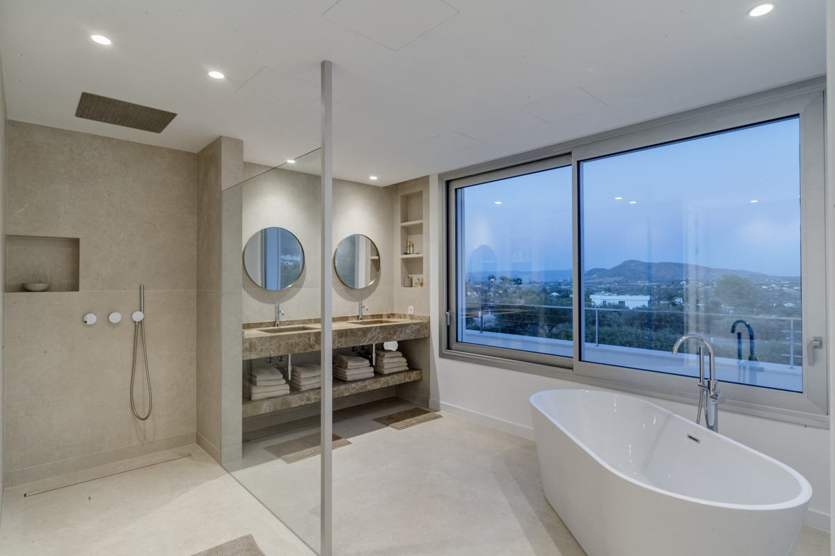 Setting: Close To Shops, Close To Town Orientation: East Condition: Excellent, New Construction Pool: Private Climate Control: Air Conditioning, U/F Heating, U/F/H Bathrooms Views: Mountain, Country, Panoramic, Garden, Pool, Street Features: Covered Terrace, Private Terrace, Ensuite Bathroom, Double Glazing, Domotics, Fiber Optic Furniture: Fully Furnished Kitchen: Kitchen-Lounge Garden: Private Security: Electric Blinds, Entry Phone, Alarm System Parking: Covered, More Than One Utilities: Solar water heating