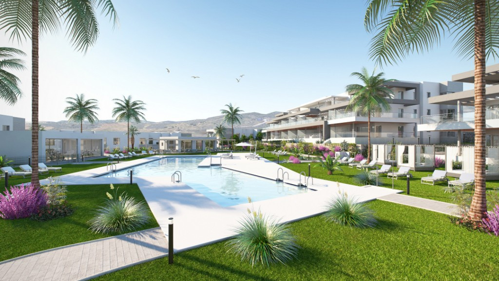 Setting: Close To Schools Pool: Communal Climate Control: Hot A/C Views: Sea, Mountain, Country, Pool Features: Ensuite Bathroom Kitchen: Fully Fitted Garden: Communal Security: 24 Hour Security Category: New Development