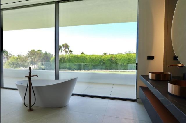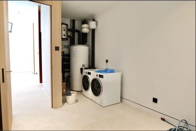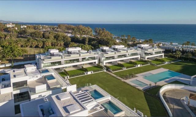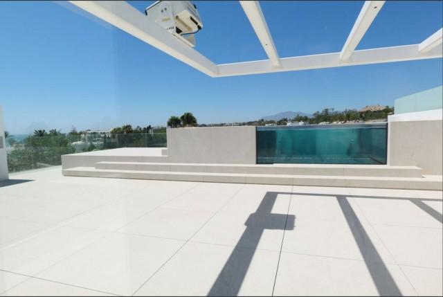 This exceptional semi-detached villa is located in a prestigious gated community on Marbella's Golden Mile, just 250 meters from the beach and within easy reach of the Puente Romano and Marbella Club hotels. Spread over four levels, it combines contemporary architecture, high-quality materials, and a functional design, making it ideal as a primary residence, holiday home, or profitable investment. The property boasts spacious, light-filled rooms, a living room with an open-plan kitchen equipped with Gaggenau appliances, and direct access to a private terrace with a garden. The first floor features two en-suite bedrooms with luxurious finishes and natural oak floors. A highlight is the rooftop solarium, which offers a private heated swimming pool and panoramic sea views. The lower level includes a three-car garage, storage areas, and a multifunctional room adaptable as a bedroom, gym, or cinema room. A modern and exclusive home in an unbeatable location. Semi-Detached, Beachside, Fitted Kitchen, Underground parking, Pool: Communal and Private, Garden: Private, Facing: South Views: Garden, Pool, Sea, Surrounds, Urbanisation Features: 2 Parking Places, Air Conditioning Hot/Cold, Alarm System, Basement, Contemporary style, Double Glazing, Electric Entry Phone, En suite bathroom, Excellent Condition, Fitted Kitchen, Fitted Wardrobes, Games Room, Garden, Garden and Pool View, Gated Complex, Guest Wardrobe, Lift, Luxury Fittings, Modern Style, Mountain View, Near amenities, Near Transport, Private Terrace, Sea Views, Smart Home, Storage room, Stylish Accommodation, Underfloor Heating, Underfloor Heating-bathrooms, Underground parking, Utility Room, Walking distance to beach, Walking Distance to Cafés, Walking distance to rest., Walking distance to shops, Wifi available, Wooden floor