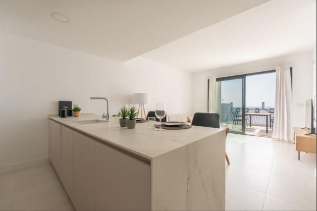 Brand new and bright 2-bed 2-bath furnished apartment in Las Lomas del Higuerón, located in Fuengirola in the heart of the Costa del Sol. The neighborhood offers public gardens with cycling paths and running tracks. On top, you will have access to the sports and wellness facilities of the adjacent Curio by Hilton Hotel, hosting 4 swimming pools, a luxury Spa, sports club, gym, and 6 restaurants, including Michelin star Restaurant Sollo at your disposal. The wide sandy beaches of Carvajal, with cozy beach bars and fine restaurants, are on your doorstep. The Altos del Higuerón shopping center, along with the picturesque white villages of Benalmádena and Mijas, is just a short drive away. Easy access to the A7 motorway, so you will reach Málaga Airport in only 15 minutes. This comfortable apartment is located on the first floor, and thanks to its South orientation, natural light fills the rooms, allowing for plenty of sunshine to enjoy during the day. The spacious and partly covered balcony offers nice views of the Mediterranean Sea and the Mijas mountains. Containing 2 bedrooms, 2 bathrooms, an open plan living-dining room with a modern kitchen including a large peninsula bar with integrated sink and dishwasher. Inside and outside merge seamlessly thanks to floor-to-ceiling Cortizo glass sliding doors over the full width of the property, connecting the salon and bedrooms barrier-free to the sunny terrace. Wardrobes, a heat pump for domestic hot water, a washing machine, air conditioning, underfloor heating, bathrooms, fiber optic internet, and an alarm system are all fitted. Besides, this apartment comes with 2 private parking spaces in the underground garage and a storage room. Communal garden and swimming pool, fully furnished in modern Scandinavian style, so ready to enjoy your holidays now! Contact us for viewings. Apartment, Near Beach, Kitchen-lounge, Underground parking, Communal Pool, Garden: Community, Facing: South Views: Countryside, Courtyard, Garden, Partial Sea Features: 2 Parking Places, 5-10 minutes to Golf Course, Air Conditioning Hot/Cold, Alarm System, Ceramic gres floor, Close to schools, Community Garden, Community Pool, Conveniently Situated for Golf, Conveniently Situated Schools, Conveniently Situated Tennis, Covered Terrace, Disabled access, Double Glazing, Electric Blinds, Electric Entry Phone, Excellent Condition, Fitted Kitchen, Fitted Wardrobes, Furnished, Garden and Pool View, Gated Complex, Guest Wardrobe, Landscaped Gardens, Lift, Near amenities, Near Transport, Newly Built, Private Terrace, Salt water pool, Sea Views, Storage room, Underfloor Heating, Underground parking, Utility Room, Wifi available