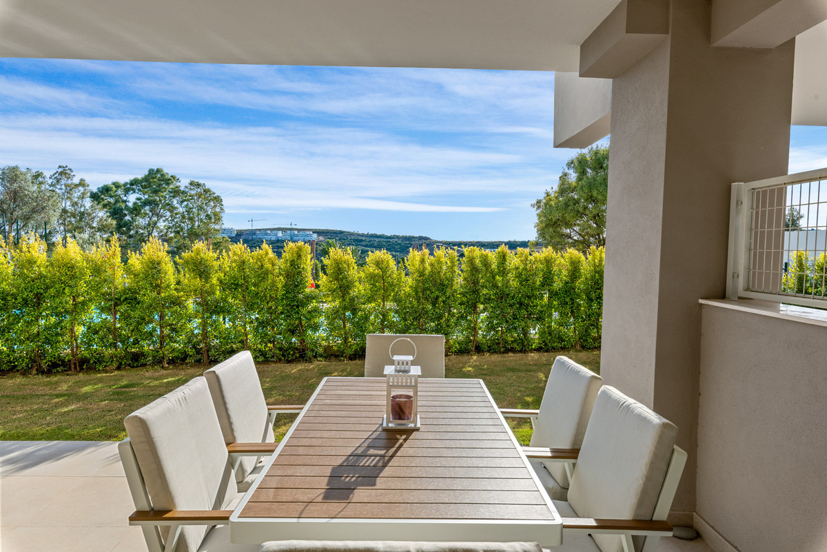 Setting: Close To Shops Orientation: South West Condition: Excellent, New Construction Pool: Communal Climate Control: Air Conditioning Views: Mountain, Golf, Country, Pool Features: Covered Terrace, Fitted Wardrobes, Private Terrace, Ensuite Bathroom, Double Glazing Furniture: Fully Furnished, Optional Kitchen: Partially Fitted, Kitchen-Lounge Garden: Private Security: Gated Complex, Electric Blinds, Entry Phone Parking: Covered Category: Golf, Luxury