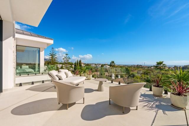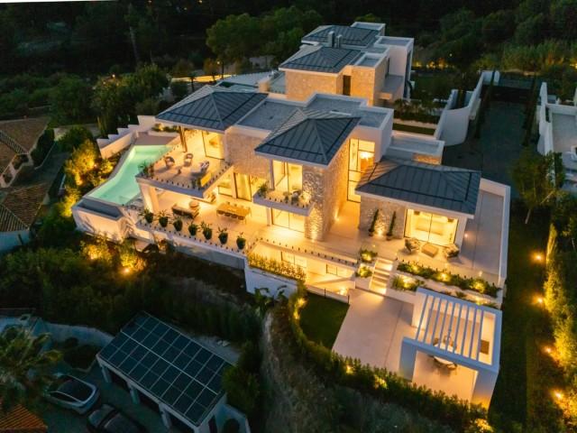 This exceptional contemporary residence is situated within an exclusive private gated complex just minutes from Marbella’s most prestigious destinations. Set between the shimmering Mediterranean Sea and the iconic La Concha mountain, the villa enjoys breathtaking panoramic views across the golf valley, natural landscapes, and coastline, offering complete privacy and a profound sense of tranquillity. The villa unfolds elegantly across three spacious levels, showcasing five beautifully designed bedrooms and five luxurious bathrooms, each crafted with meticulous attention to detail. The main floor is defined by bright, open-plan living spaces that flow effortlessly between the designer kitchen, refined dining area, and sophisticated lounge. Expansive floor-to-ceiling windows invite natural light throughout, opening onto generous terraces and a stunning 51 m² infinity pool that frames the spectacular scenery and enhances the seamless indoor–outdoor lifestyle. The upper level is dedicated to the master suite, featuring a private terrace with captivating views, a walk-in dressing area, and an elegant spa-inspired bathroom. Additional guest suites are designed with comfort, privacy and style in mind, offering serene retreats for family and visitors. The lower entertainment level provides a refined leisure space, complete with a cinema lounge, gym area, laundry room, multiple storage rooms, and a garage for several vehicles. Every zone has been conceived to combine functionality, elegance and modern convenience. This magnificent villa is ideally located just minutes from La Quinta Golf & Country Club, Los Naranjos Golf, Los Arqueros Golf, and a short drive from the world-famous Puerto Banús and Puente Romano. Surrounded by lush greenery, world-class amenities and the very best of Marbella living, this residence represents a rare blend of contemporary architecture, natural beauty and exclusive lifestyle.