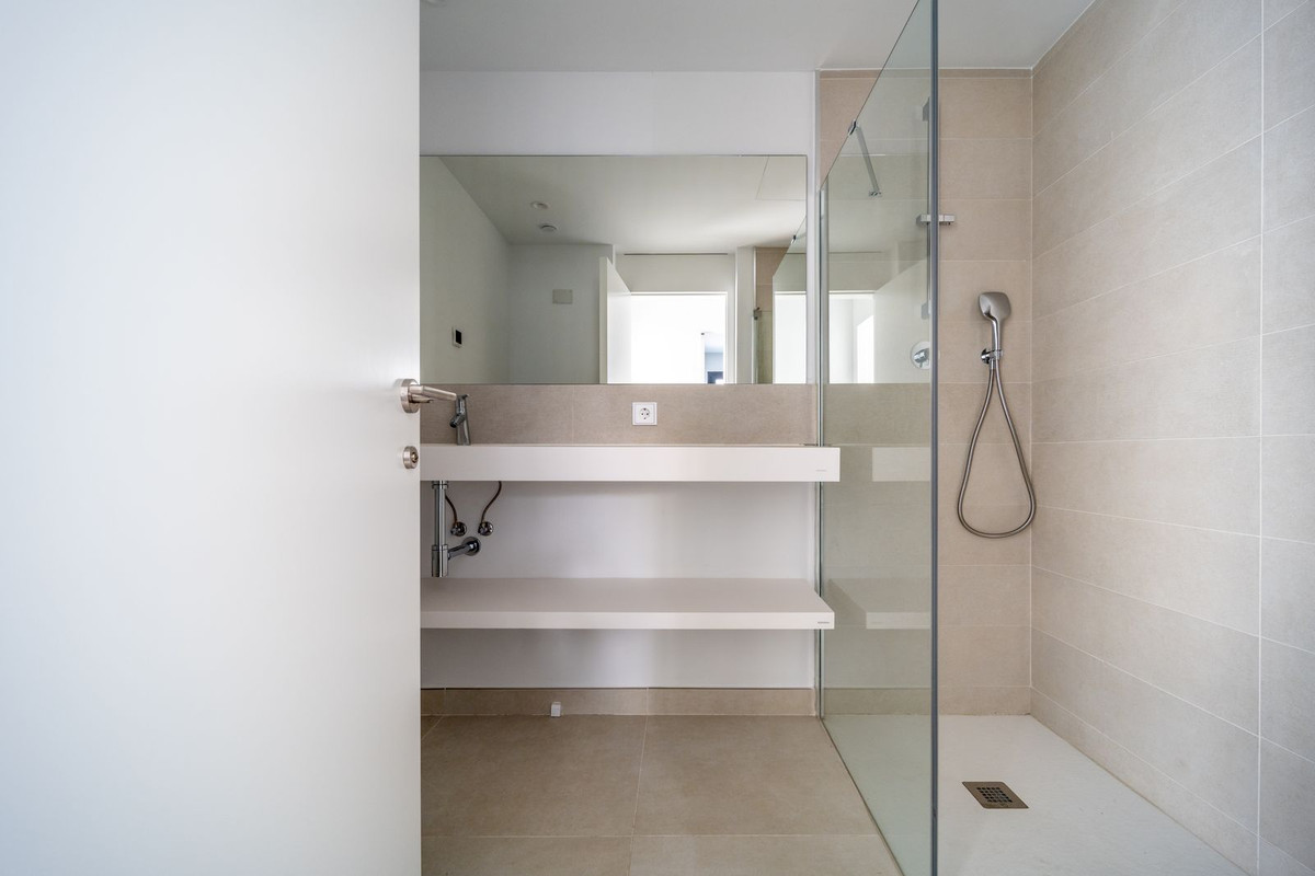 This brand new luxurious corner garden apartment is situated in the prestigious Higuerón West urbanization and features two bedrooms, two bathrooms, a generous living-dining area, and an open-plan kitchen that is fully furnished and equipped with electrical appliances. It also includes a laundry area with a washer/dryer. The living space boasts floor-to-ceiling sliding doors that open to a vast wrap around terrace of 35m2 offering urban, pool and partial sea views. Additionally, there is 68m2 of private garden and an outdoor shower. Spacious master bedroom with an en-suite bathroom and terrace of 18m2, perfect for enjoying the morning sunshine. The apartment is equipped with both hot and cold air conditioning, a video intercom, a home automation system, built-in wardrobes in the bedrooms, a pre-installed alarm system, and underfloor heating in the bathrooms. It also includes two parking spaces and one storage room.